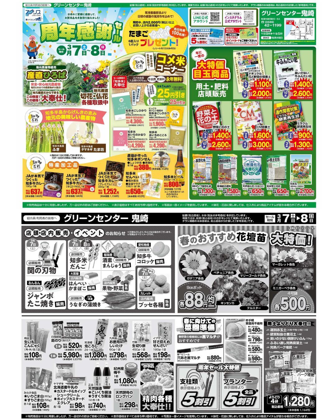 令和8年3月7日(土)~令和8年3月8日(日)の2日間、グリーンセンター鬼崎店では日頃のご愛顧に感謝して、「周年感謝セール」を開催します。ぜひご来店ください。