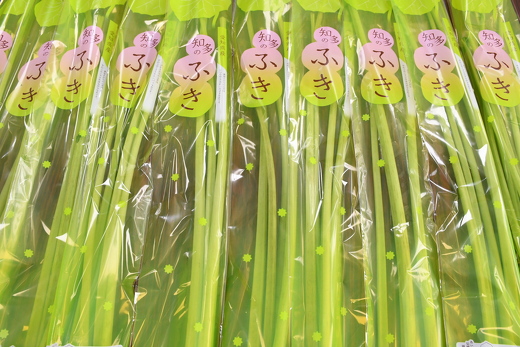 10月から2月上旬まで出荷される秋フキ(抑制栽培)と、2月から5月まで出荷される春フキ(促成栽培)があり、全国シェアの40%を占める日本1の産地です。