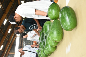 部会員が持ち寄ったトウガンをサンプルとして、着色や形状、傷などによる等級の選別基準を確認しました。