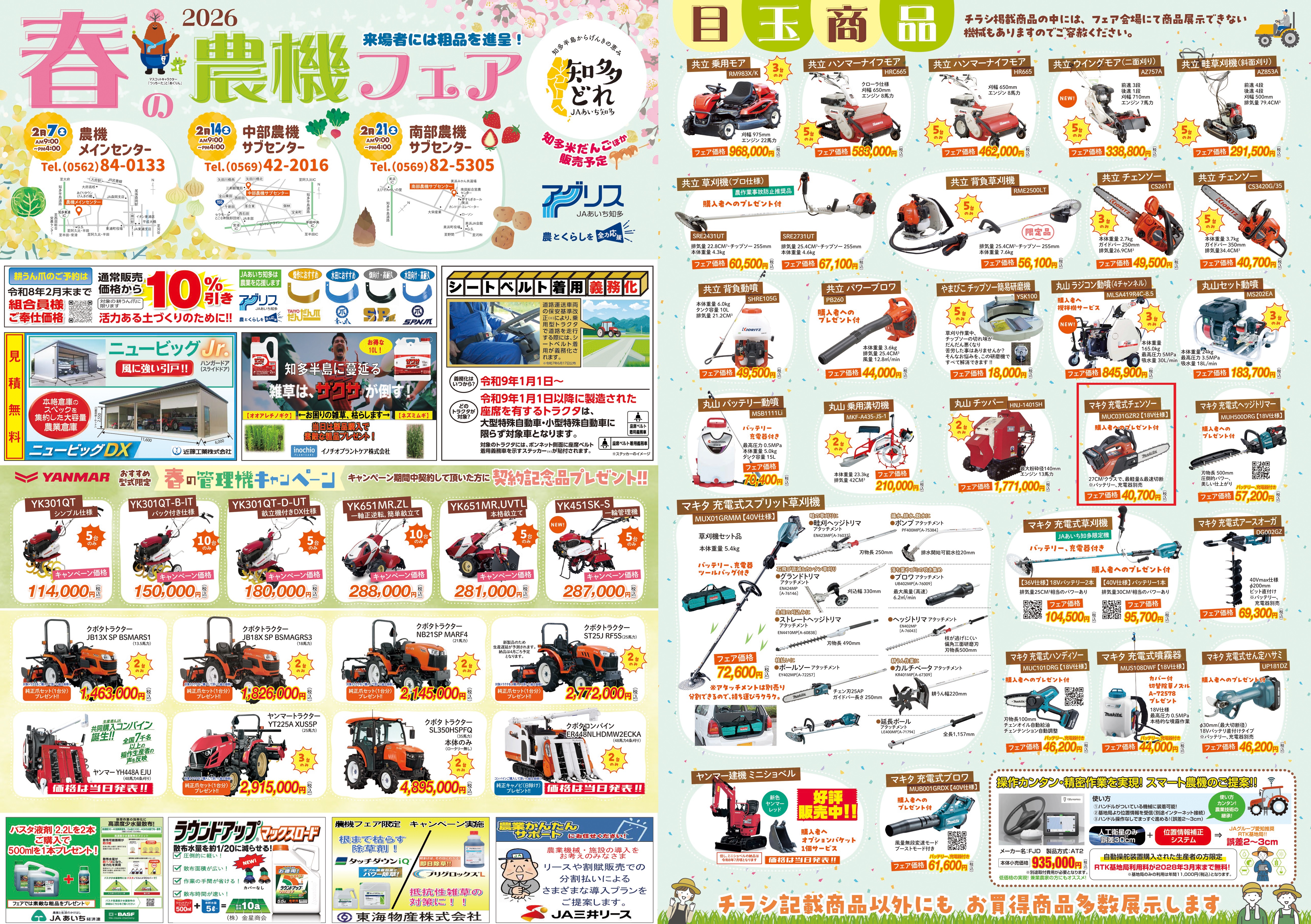 2026春の農機フェアチラシ(裏面)に掲載していますマキタ商品