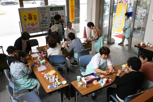 JAあいち知多助け合い組織ぬくもりの会大府支部共和地区は5月27日、共和支店でぬくもりカフェを開きました。 支店に来店した利用者が気軽に立ち寄ってお茶を飲みながら会話を楽しんだり、折り紙で兜やこいのぼりを折って交流しました。