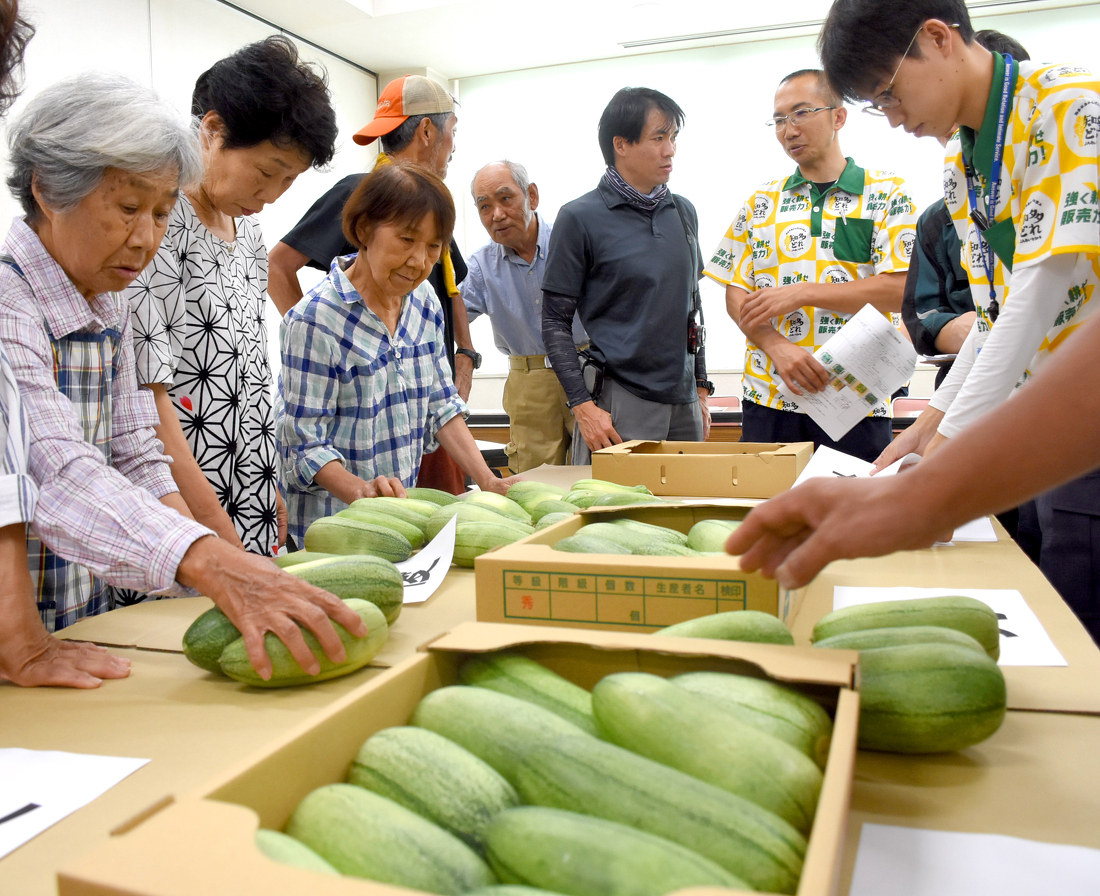JAあいち知多西部かりもり部会は6月20日、本格的な出荷を前に、西部総合営農センターでカリモリの目ぞろえ会を開きました。部会員や市場関係者ら24人が参加し、等級の選別基準などの出荷規格を確認しました。