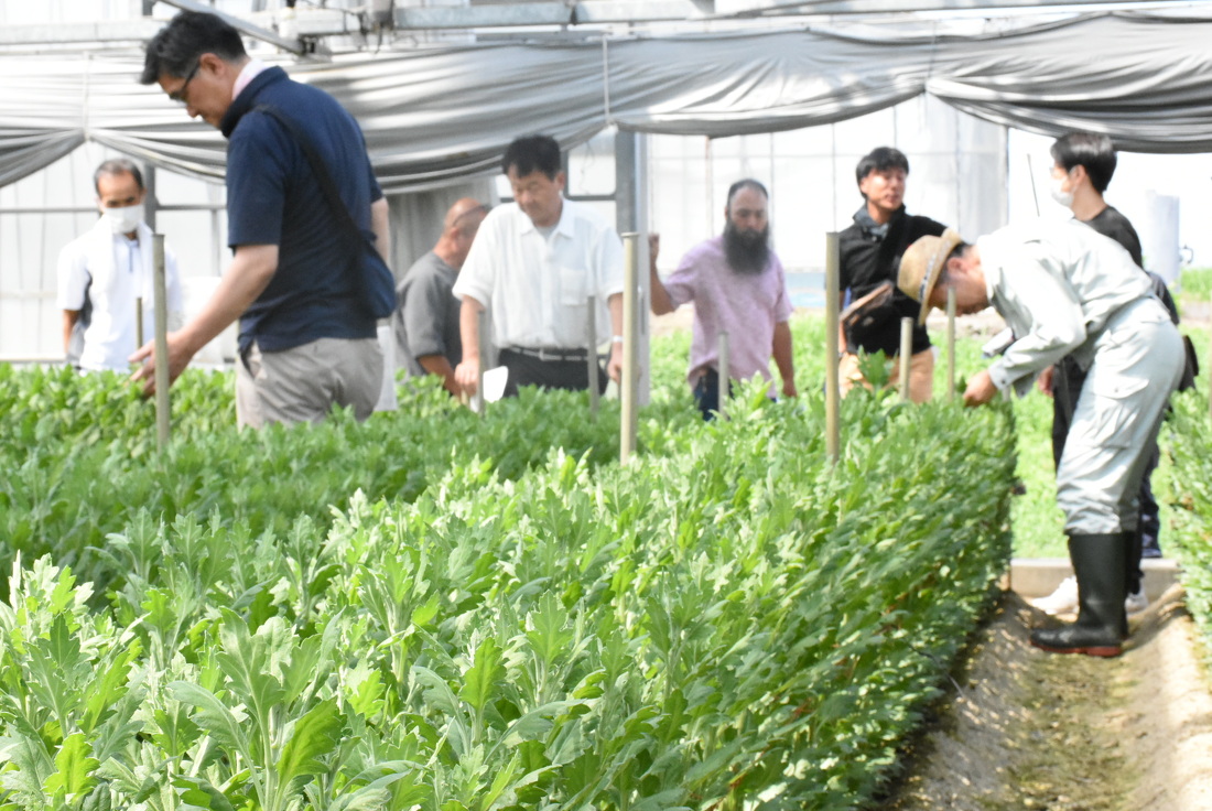 黄菊の共選出荷組織「ウイングマム21」は6月27日、盆需要前に生産者のほ場を巡回しました。