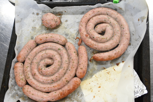 知多半島産の豚肉ミンチを腸に詰めて、好みの大きさや形のソーセージを作りました。