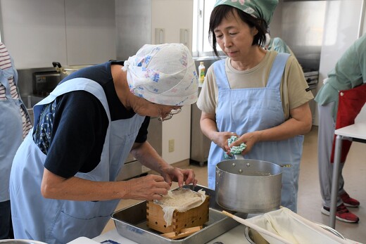 女性部大府地域の役員研修の一環として、8月20日に大府支店の調理室で豆腐作りを行いました。