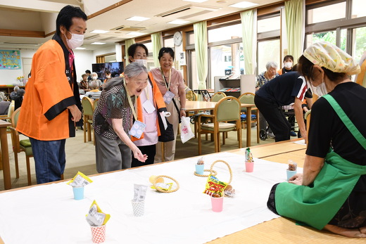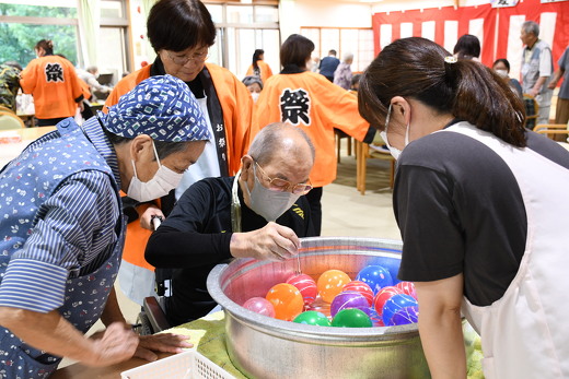 夏祭りが開催され、千本引きや輪投げ、ヨーヨー風船釣りなどに挑戦する利用者をサポートしました。