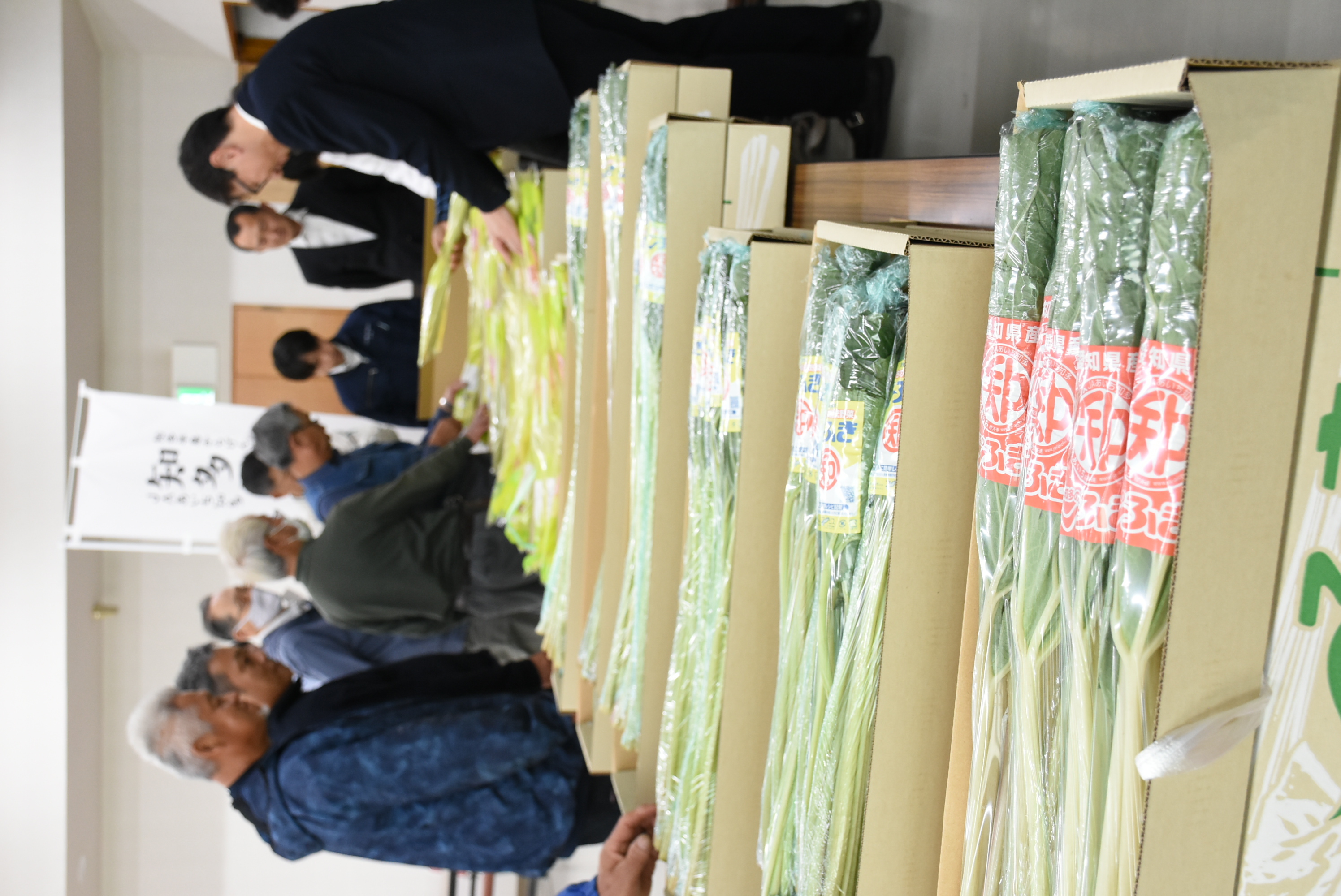 知多半島内のフキ生産者や関係者らが、フキの選別基準や出荷規格を確認しました。