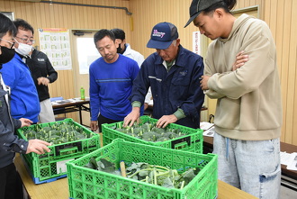 大府市の吉田ブロッコリー部会は11月11日、大府集荷センターで目ぞろえ会を開き、出荷規格やコンテナへの積み方などを確認しました。 この日はほ場巡回も実施し、部会員や市場関係者らが生産者のほ場を訪れ、生育状況を確認しました。