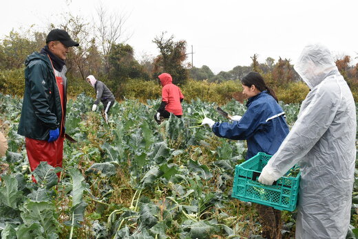 ベテラン農家の指導のもと、みなさんブロッコリーを収穫し、丁寧に葉や茎を切り落とすなどの調製作業も体験しました。