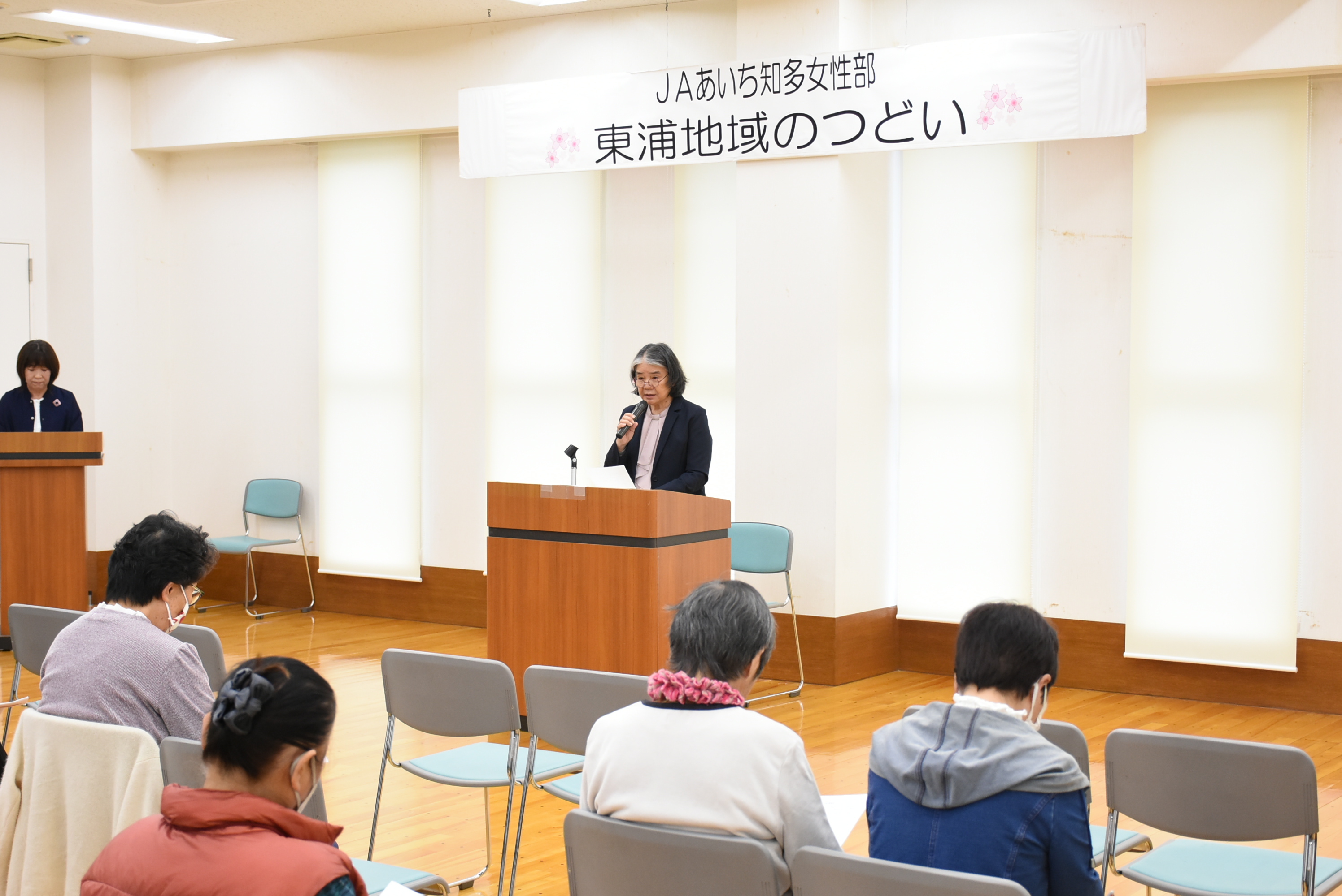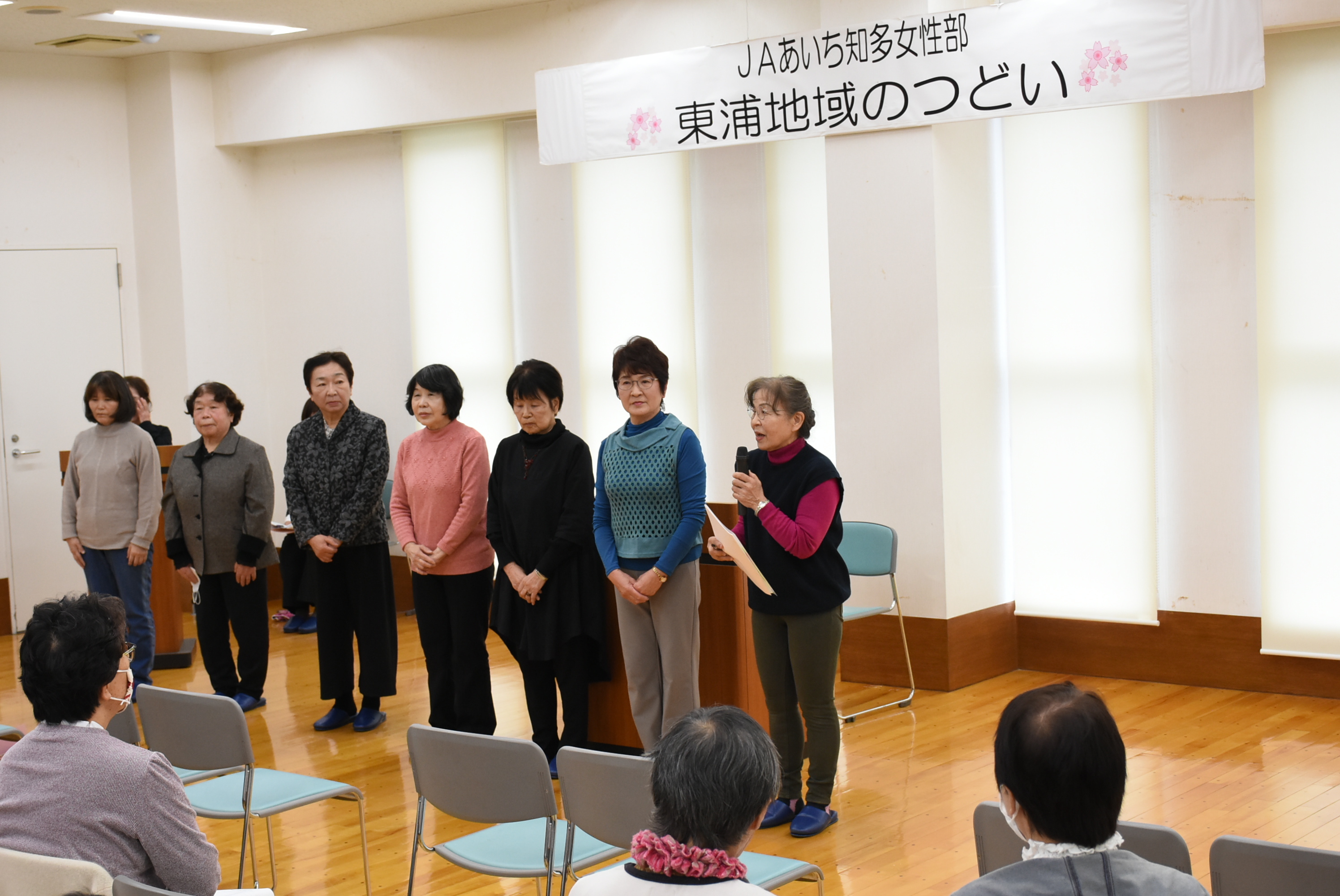 女性部東浦地域は2月25日、令和7年度の総会にあたる「地域のつどい」を開きました。 令和7年度の活動報告や令和8年度の活動計画が承認され、新役員が紹介されました。 総会後には、役員が作った防災食のカレーをみんなで試食し、作り方を共有しました。